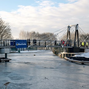 Barhale were awarded this £1.1 million contract to replace a pedestrian footbridge. The project saw the replacement of a dilapidated non-functioning timber swing bridge across the River Weaver with a 28 tonne steel bridge, incorporating a rotating 32.5 metre section. The bridge is restricted to pedestrian and cycle traffic only and was manufactured by BCS, Barhale’s in house fabrication workshop in Walsall.